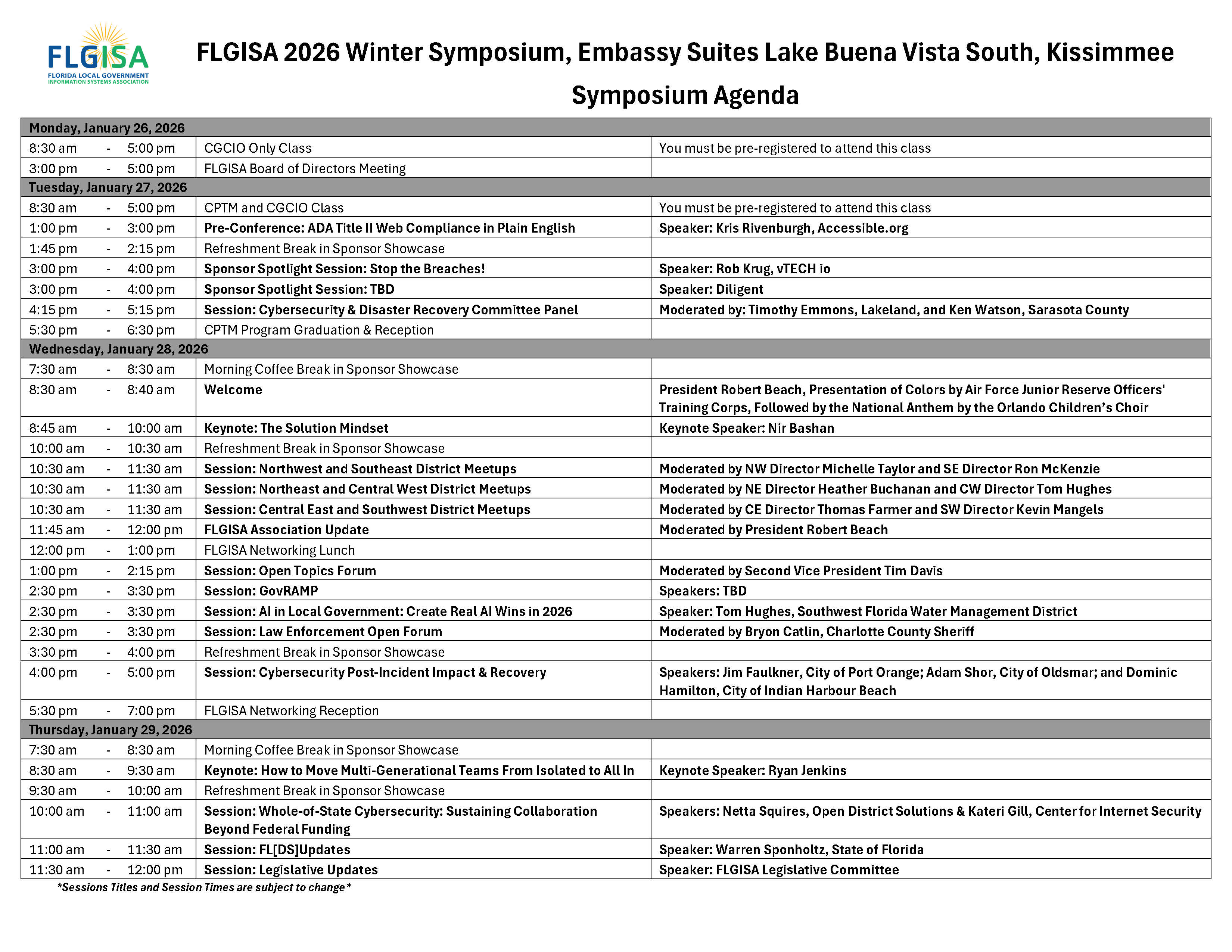 Winter Symposium Agenda