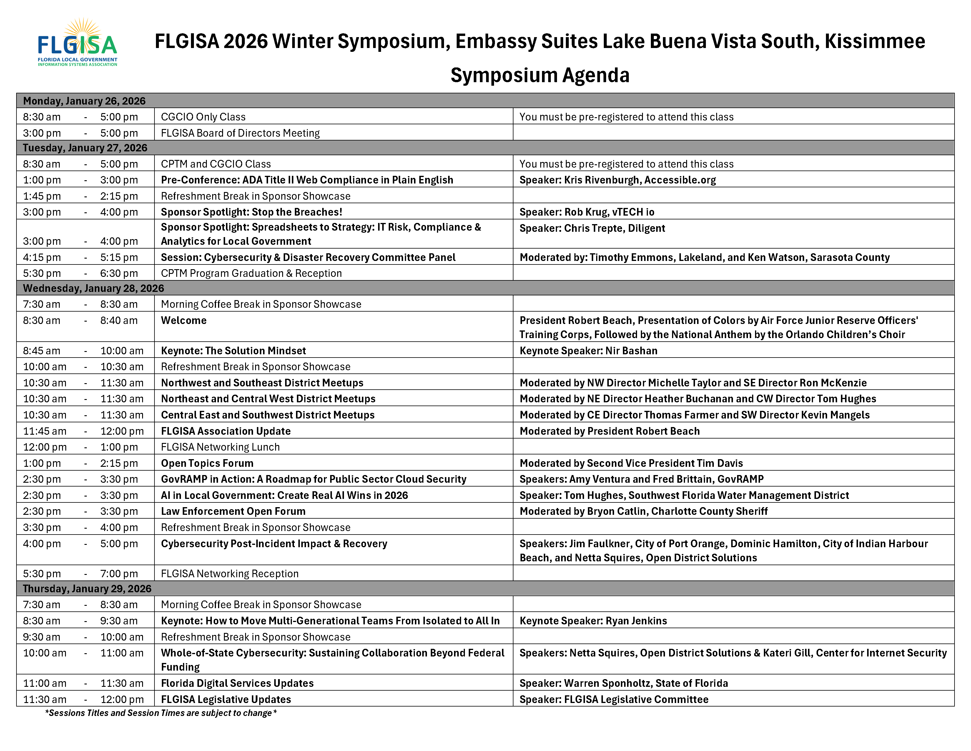 Winter Symposium Agenda